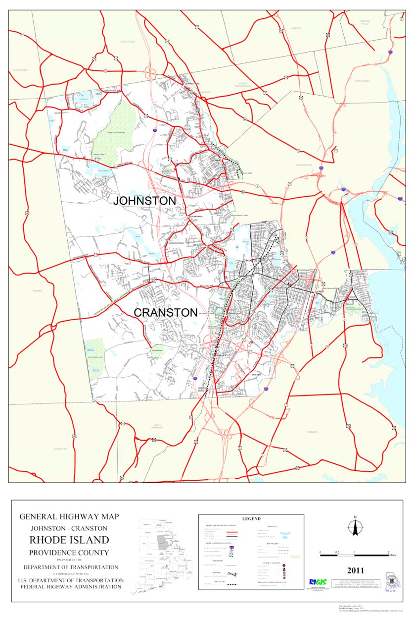 Highway Map of Providence County (Johnston/Cranston) Rhode